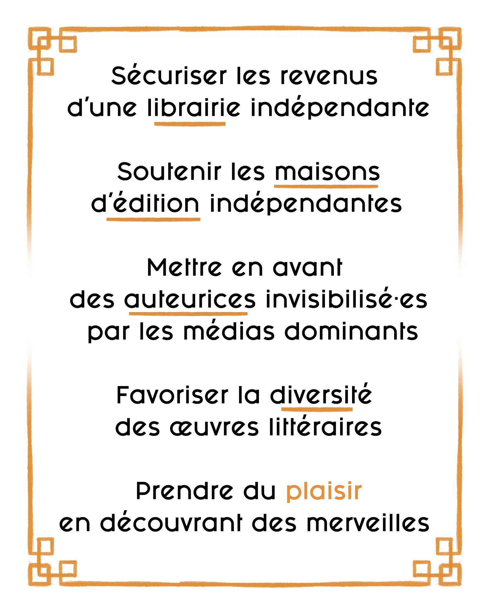 Les livres proposés font d’abord partie de nos coups de cœur ! Ils sont édités et distribués par des maisons d’édition indépendantes, garantis sans fascisme ajouté ni influence de Bolloré.